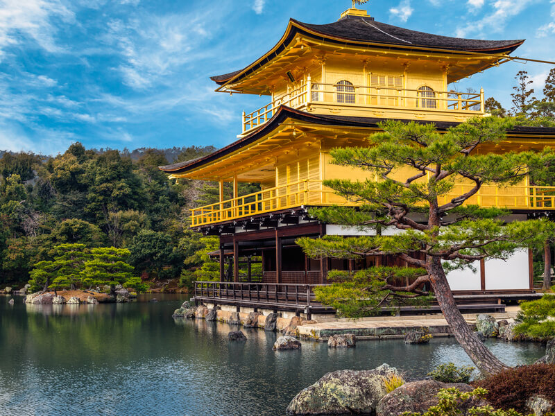 | 금각사는 일본 교토의 대표적인 사찰 중 하나로, 전면이 금박으로 빛나는 건축물이 인상적입니다. 원래 1397년에 건축된 이후 불교 사찰로 개조되었으며, 황홀한 금빛 외관이 연못에 반사되어 마치 그림 같은 풍경을 연출합니다. 금각사는 유네스코 세계문화유산으로 지정되어 그 문화적 가치를 인정받고 있으며, 매년 수많은 방문객들이 일본 전통 건축의 아름다움과 평화로운 정취를 만끽하기 위해 이곳을 찾습니다. |
