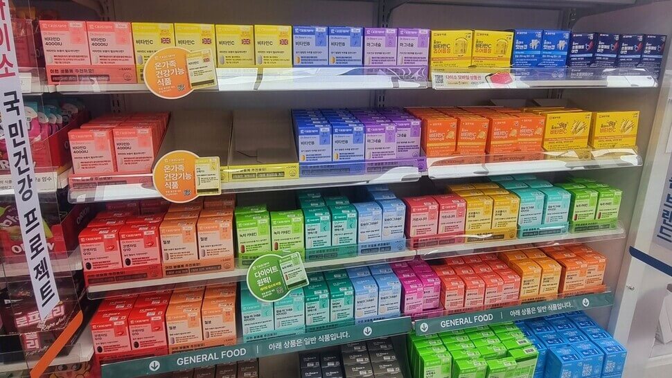 최근 영양제와 건강기능식품까지 취급하면서 대형마트나 약국이 아닌 생활용품점에서도 쉽게 건기식을 구매할 수 있는 환경이 조성되었죠.