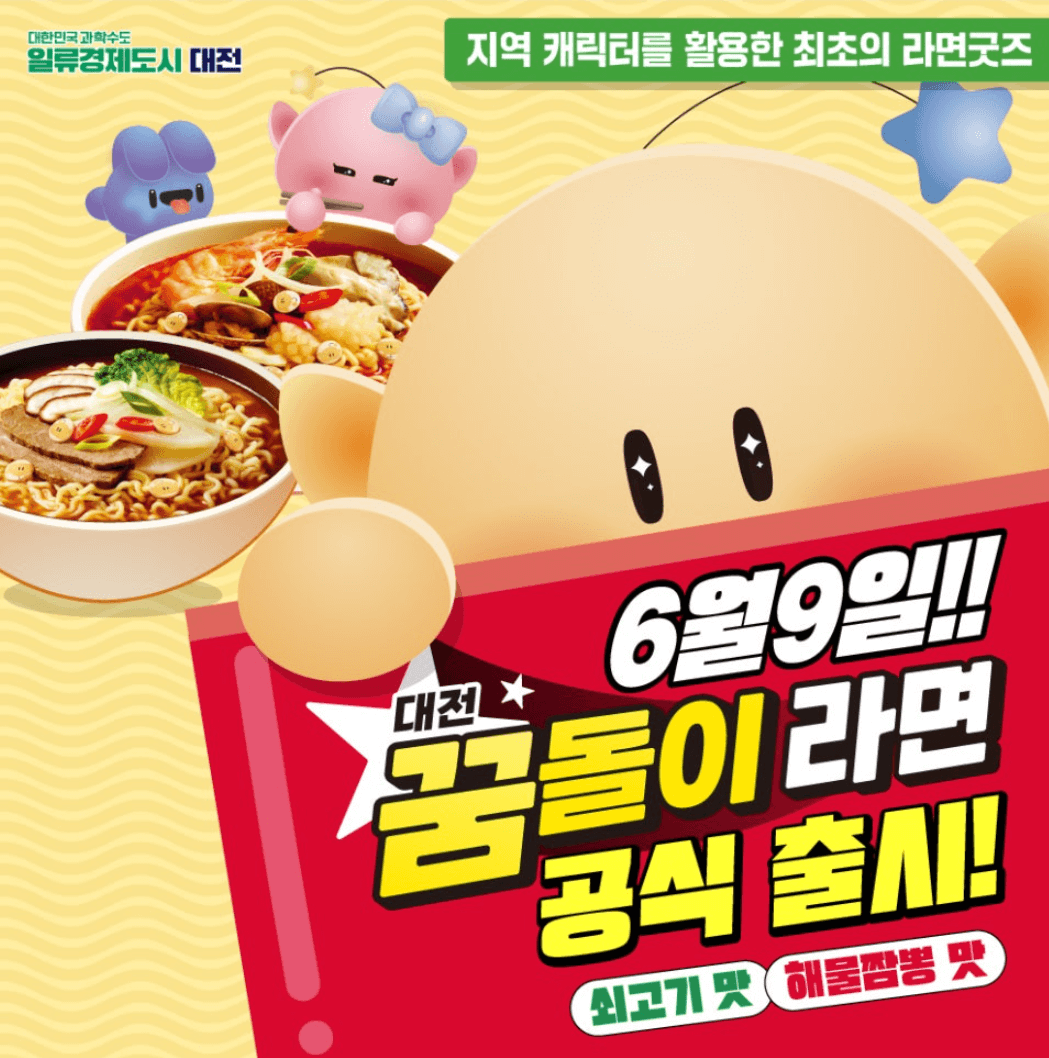 2025년 6월 9일 대전시가 야심차게 내놓은 ‘대전 꿈돌이 라면’이 공식 출시되었어요.