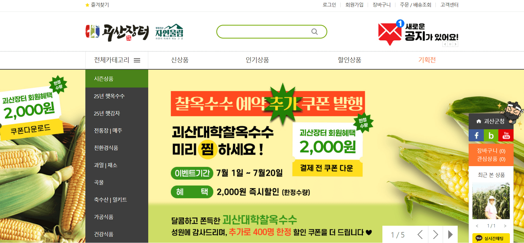 대학찰옥수수 외에도 믿을 수 있는 괴산 특산품들을 저렴한 가격에 구입할 수 있는 곳이에요. 할인 이벤트도 자주 있으니 계절이 바뀔때마다 들러보셔도 좋은 우리 농산품들을 골라가실 수 있을 거에요.
