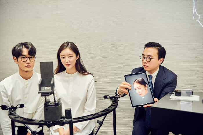 3. 스캔 데이터를 기반으로 빅데이터 분석을 통해 디자인과 사이즈를 상담해요. 디자인 중에서 얼굴형에 잘 맞는 스타일을 추천받고 색상이나 디테일은 내가 고를 수 있어요.
