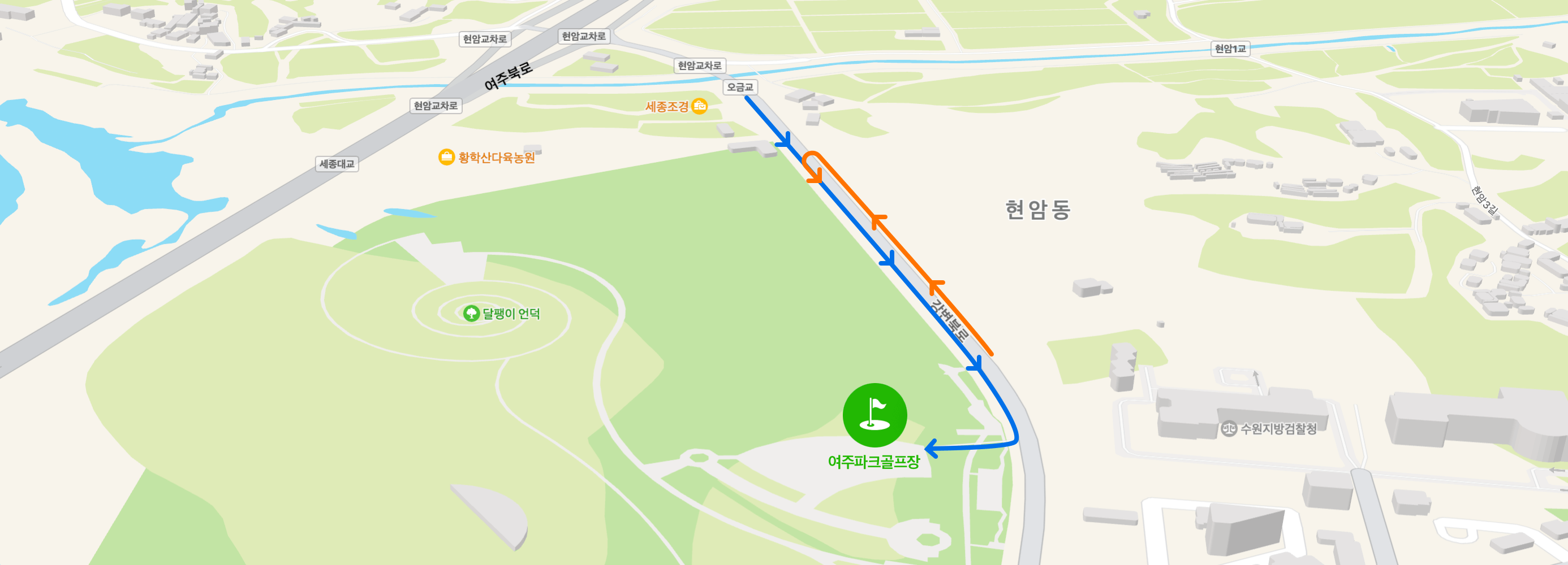 여주파크골프장은 경기도 여주시 강변북로 241(현암동 637-81)에 위치해 있으며, 총 면적은 93,348㎡에 달해요.