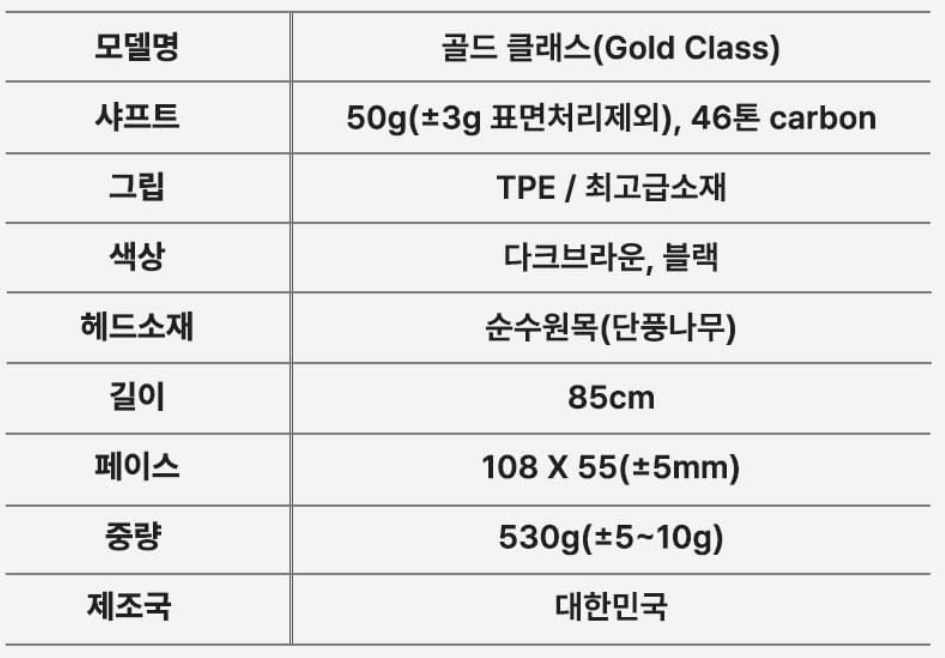 금가루를 입혀 고급스러우며 더욱 넓어진 스윗스팟으로 정확도와 비겨리를 확보할 수 있는 고급 모델이에요.