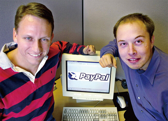 머스크는 온라인 뱅킹 ‘X.com’을 틸은 결제 스타트업 ‘Confinity’를 운영했는데 이 후 두 회사가 합병되며 지금의 페이팔이 만들어졌습니다.
