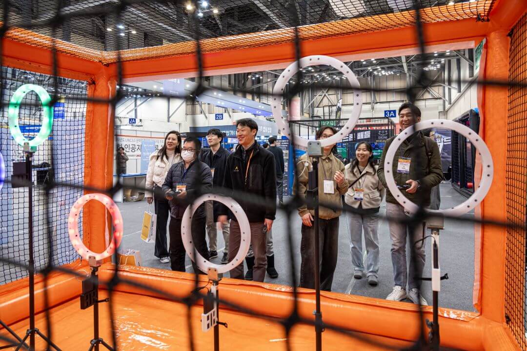 드론 농구 경기: 드론으로 공을 던져서 득점을 얻는 이색적인 드론 스포츠 게임이에요. 3일 간 벡스코 제1전시장 3홀 내부에서 상시 진행됩니다.