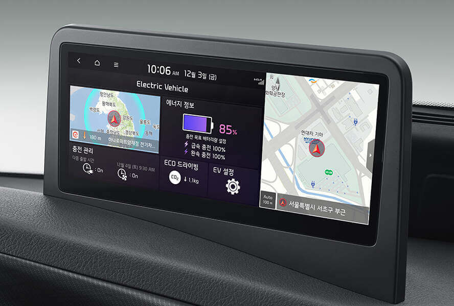 10.25인치 네비게이션은 운전 중 차량에 대한 정보와 경로 정보를 쉽게 확인할 수 있어요.