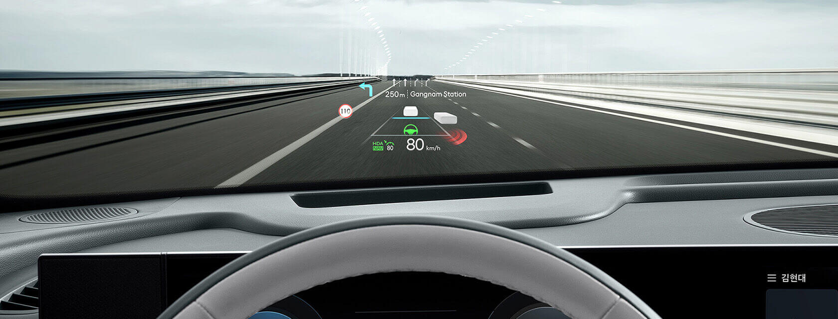 - 내비게이션 기반 스마트 크루즈 컨트롤도로의 곡선이나 제한 속도 정보를 반영하여 자동으로 속도를 조절, 안전하고 편안한 주행을 지원합니다.