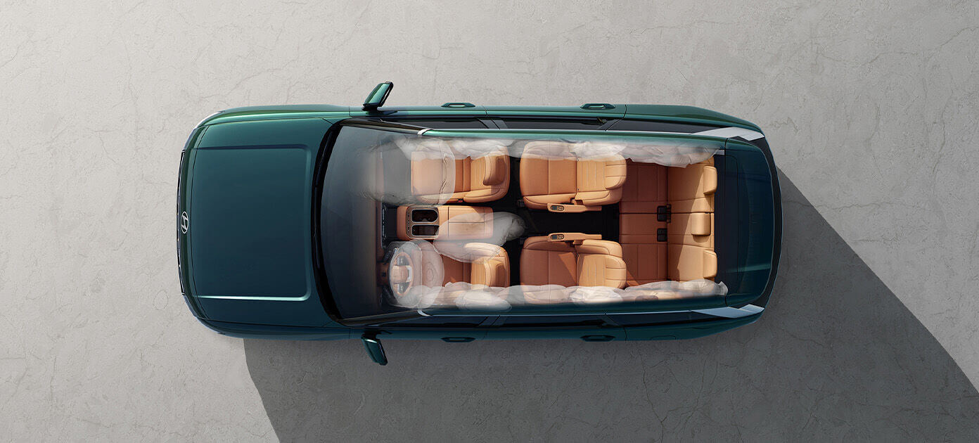 - 10에어백 시스템: 1열 어드밴스드/센터사이드, 1/2열 사이드, 운전석 무릎, 전복대응 커튼 등