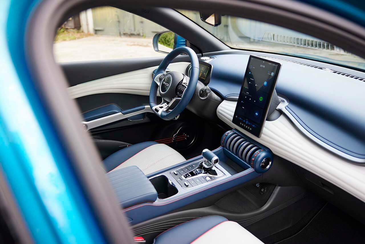 BYD 아토3는 미래지향적이면서도 심플한 디자인이 특징입니다.