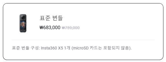 인스타360 X5는 출시가격 759,000원에서 현재 683,000원으로 할인 판매 중이에요. 예산을 고려하신다면 DJI 쪽이 유리할 수 있어요.