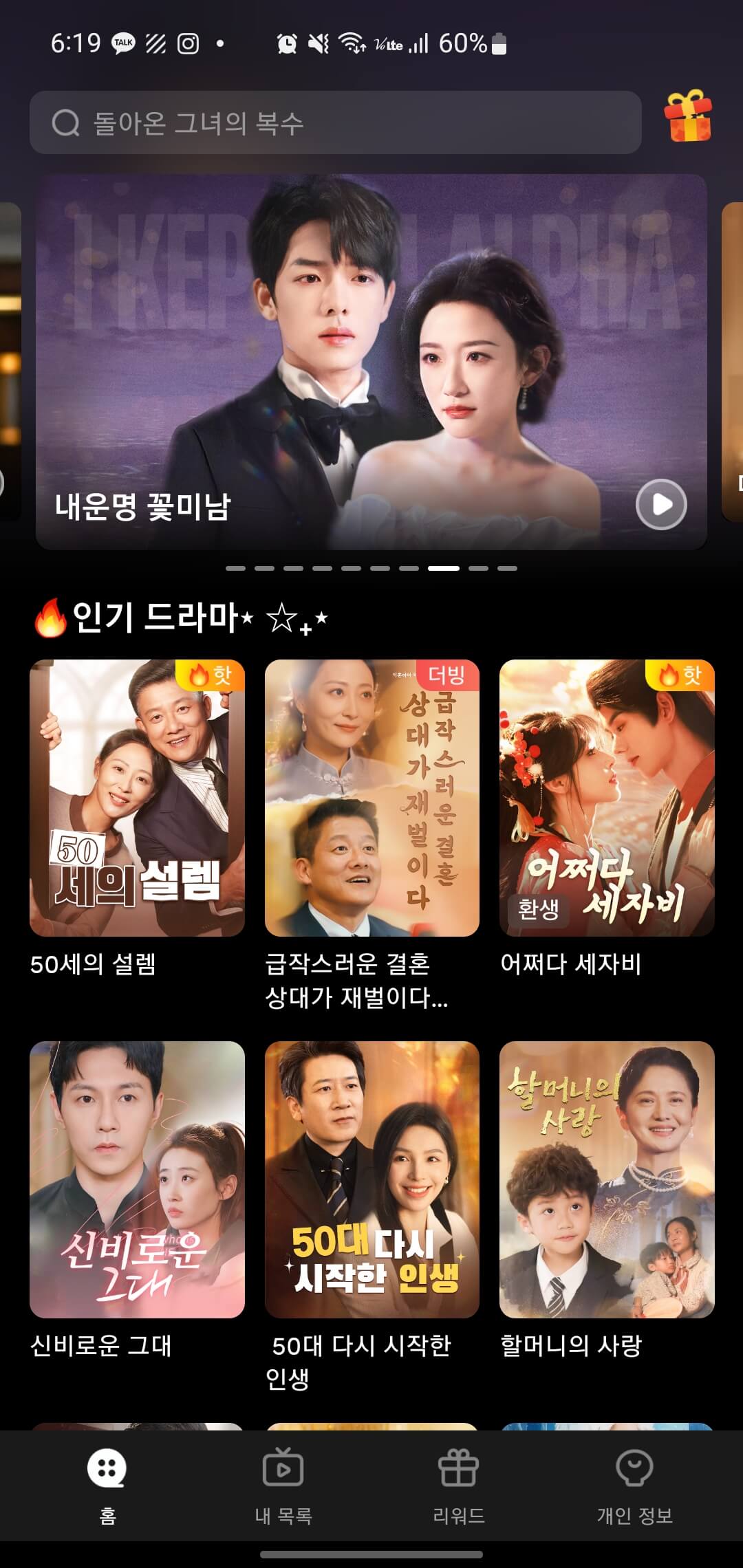 그래서 출퇴근길이나 짧은 여유 시간에도 간단하고 쉽게 즐길 수 있어 인기를 끌고 있는 서비스입니다. 다양한 장르의 드라마가 매일 업데이트되기 때문에 취향에 맞는 콘텐츠를 손쉽게 찾을 수 있는 숏폼 드라마 서비스입니다.