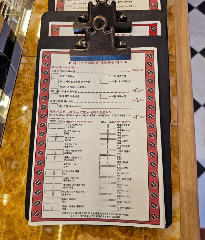 ☕ 테이크아웃 커피류는 보통 11,000원 이상, 베이커리류는 보통 5,000원 내외