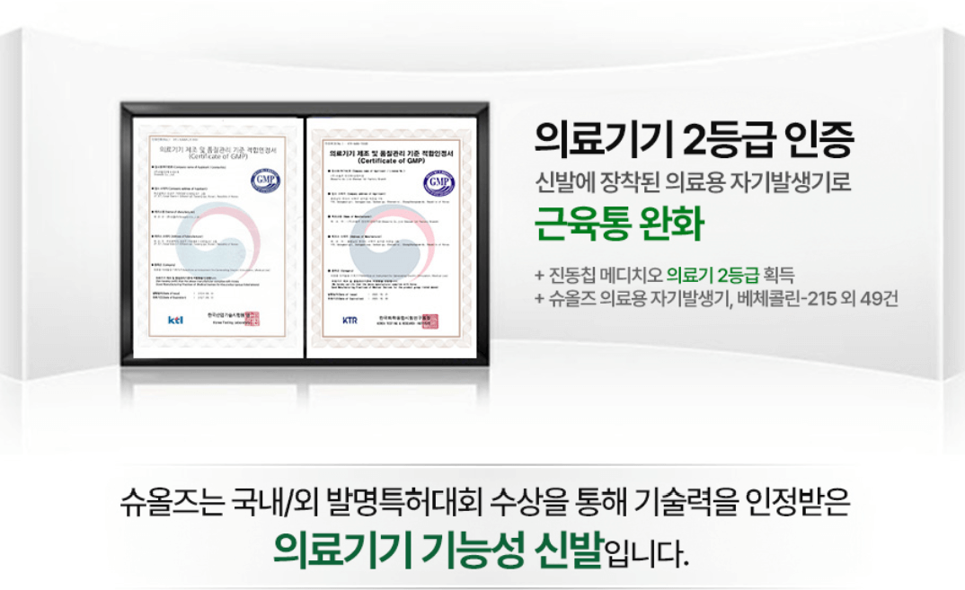 슈올즈만의 주요 기능 덕분에 장시간 착용해도 피로감이 적고, 무릎과 허리에 가는 충격도 완화해주기 때문이에요.