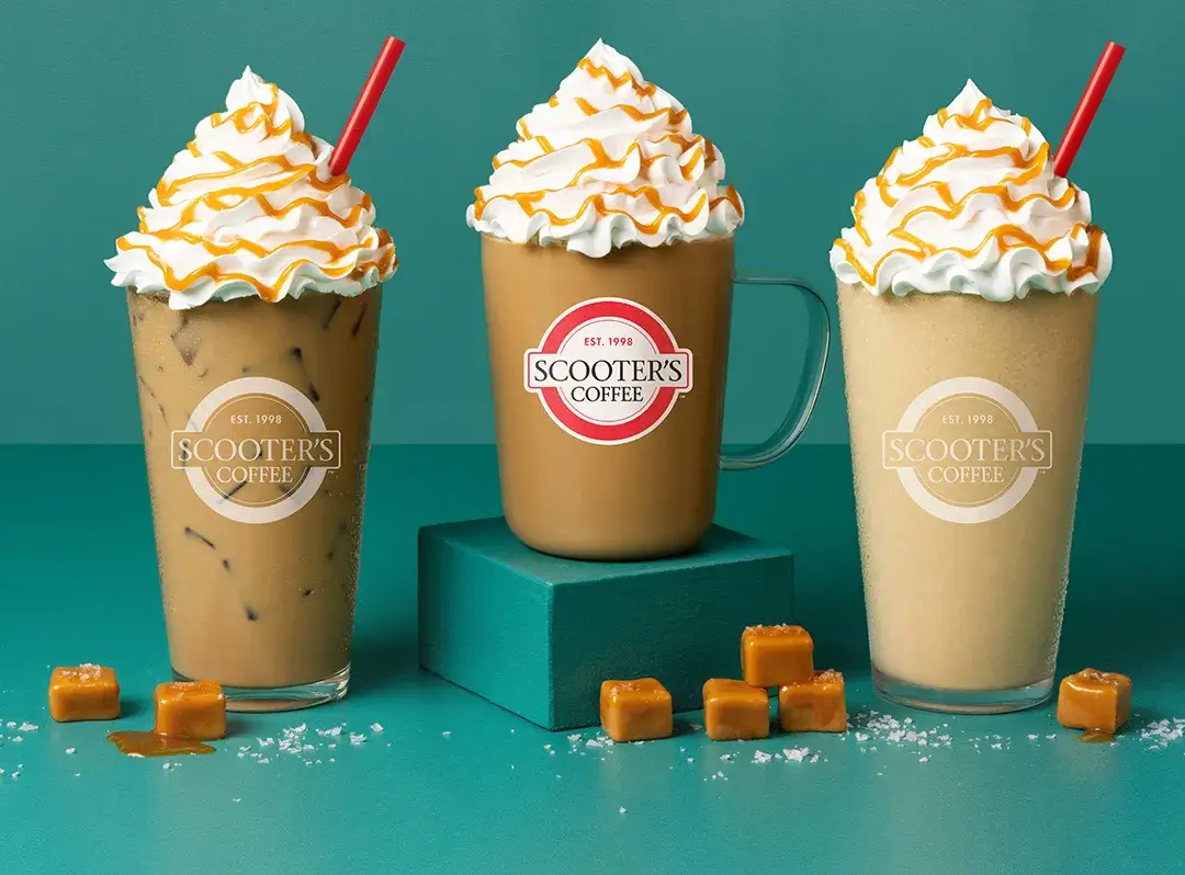 스쿠터스 커피는 매장에 테이블이 없는 드리이브 스루 전용 브랜드라는 점이 특징으로, 달달한 카라멜 커피가 시그니처 음료로 유명합니다.
