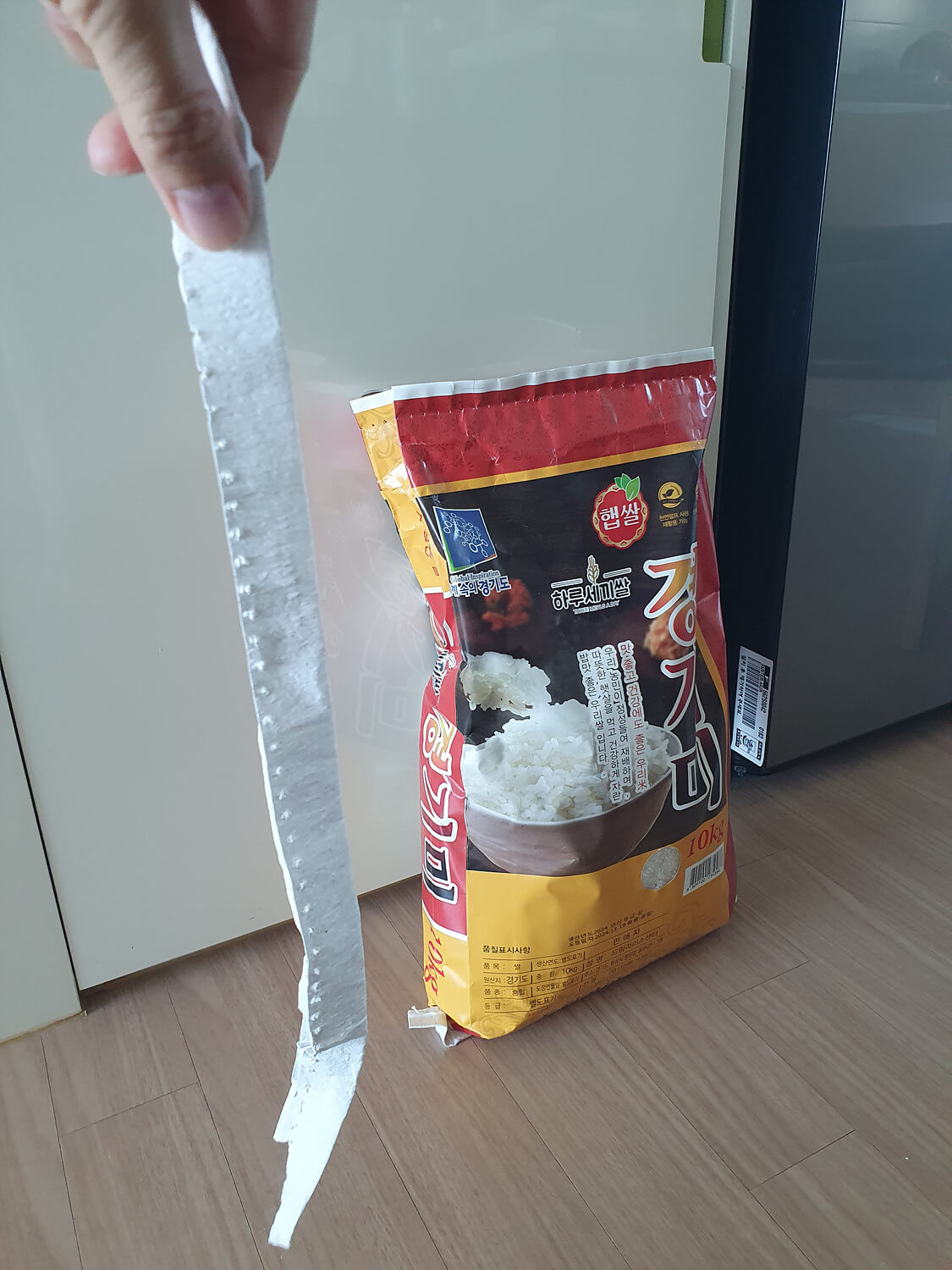 언제든지 쌀포대 뜯을 때 이 방법을 떠올리며 간단하게 시도해보세요. 스트레스도 한층 낮아질거에요!