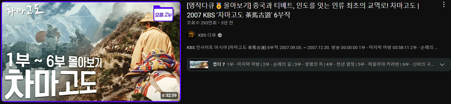 수 천년 동안 이어져 온 무역로의 이야기를 따라가며 그 길 위에서 만난 사람들의 삶과 문화를 깊이 있게 조명해 주는 작품이에요. 차마고도의 아름다움과 험난한 여정을 체험하고 싶다면 아래 링크에서 바로 감상해 보세요.