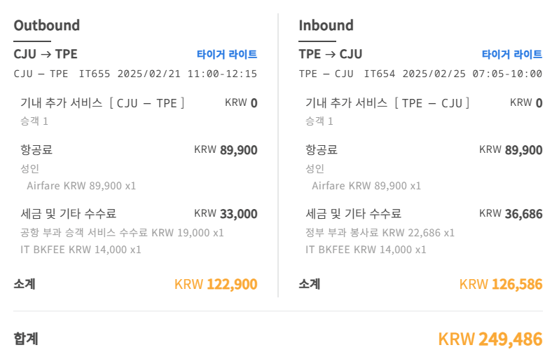 2월 대만 타이베이 항공권 최저가 정보 (20만원 대)